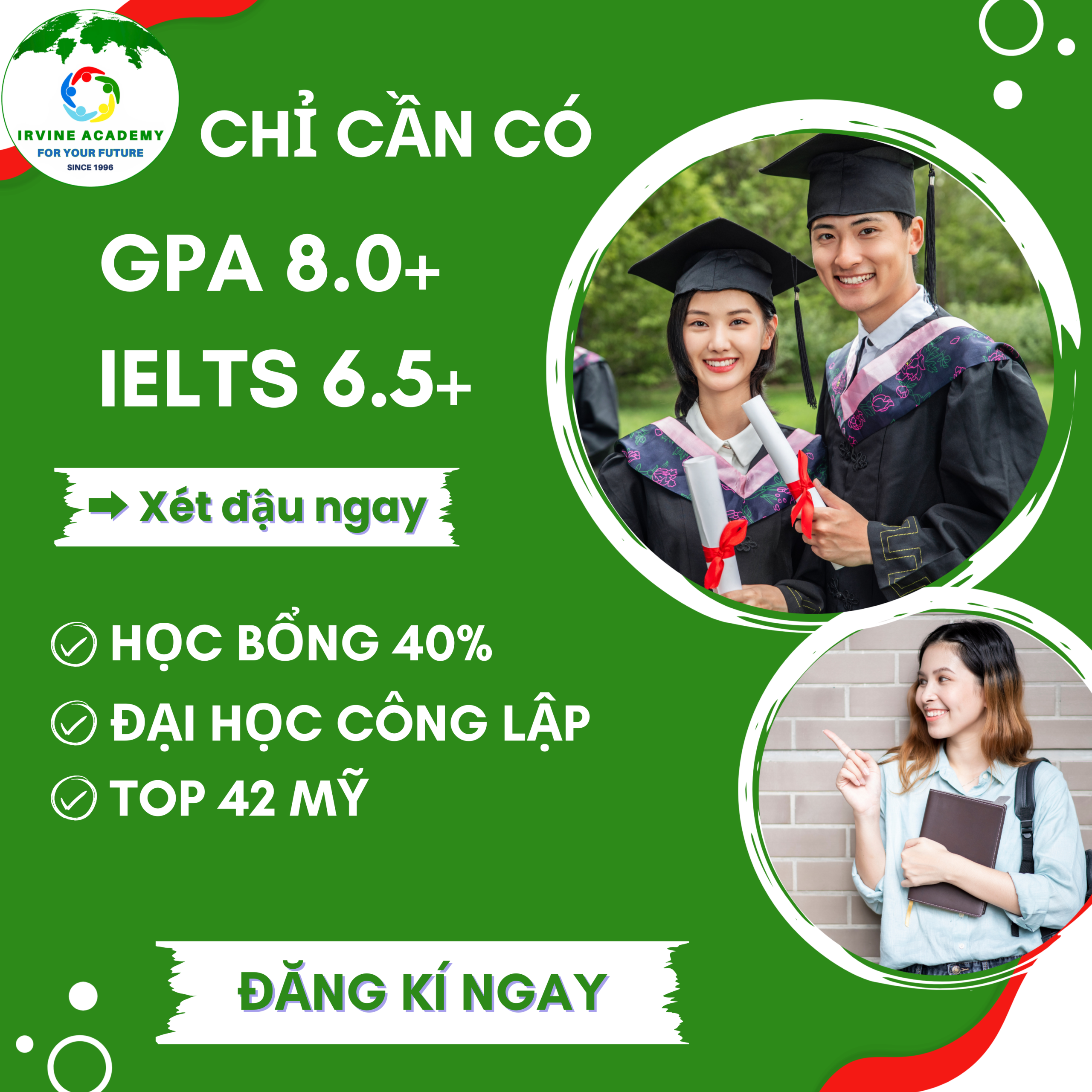Nếu bạn đang quan tâm đến chương trình du học Mỹ với học bổng hấp dẫn, hãy đăng ký tư vấn ngay để được hỗ trợ chi tiết về lộ trình học tập, chuẩn bị hồ sơ và các bước cần thiết để hiện thực hóa kế hoạch du học của mình.