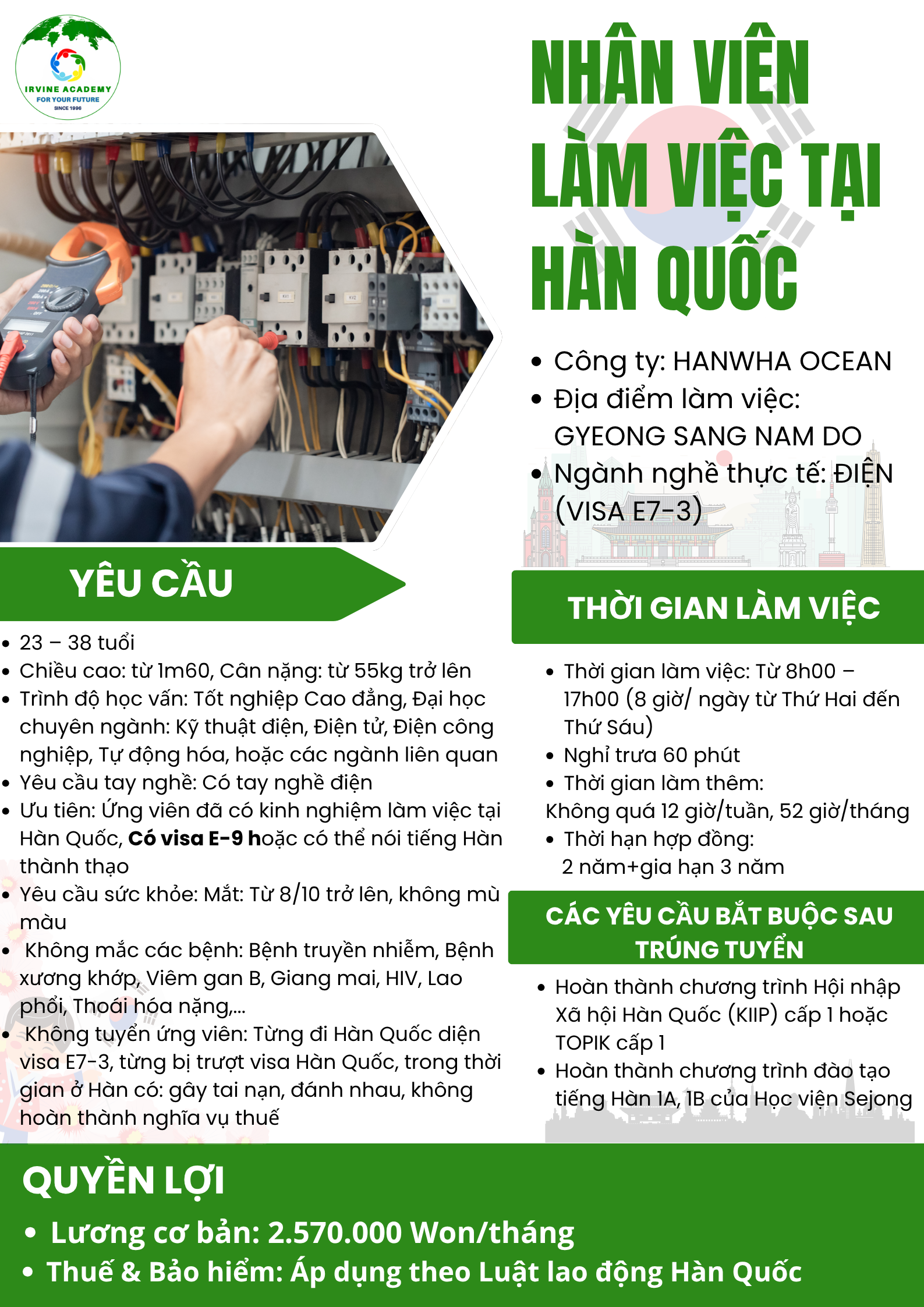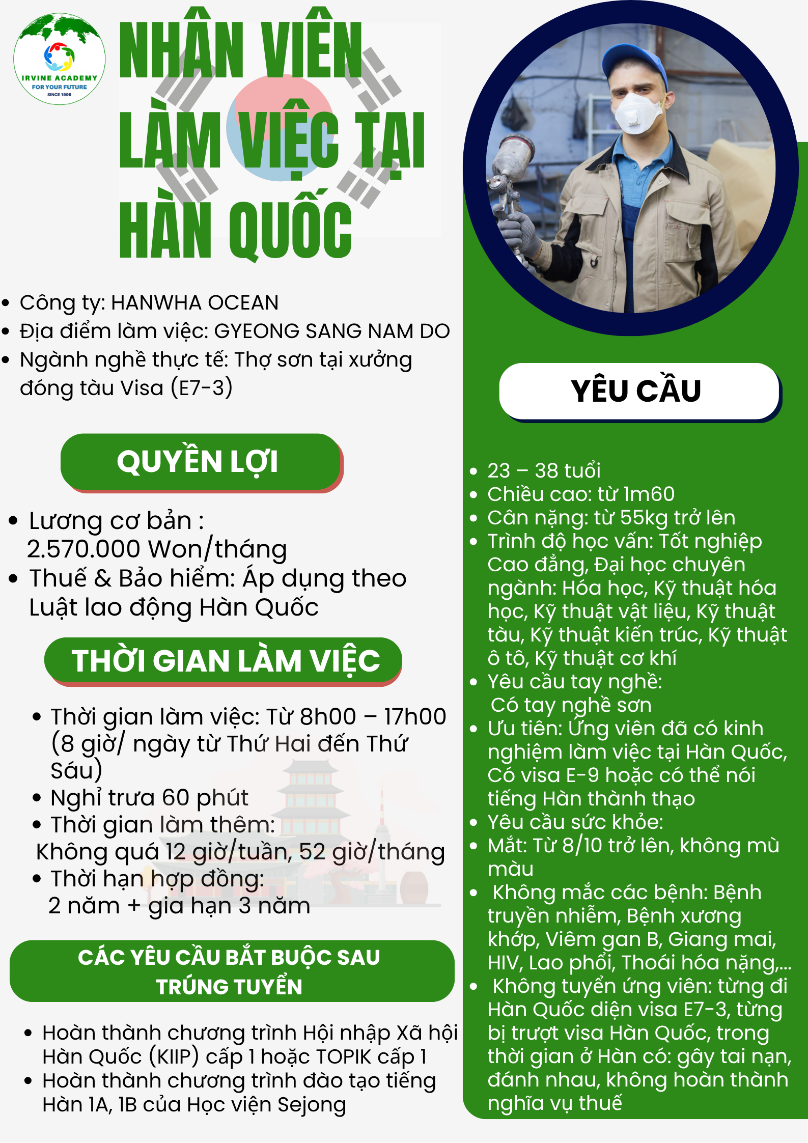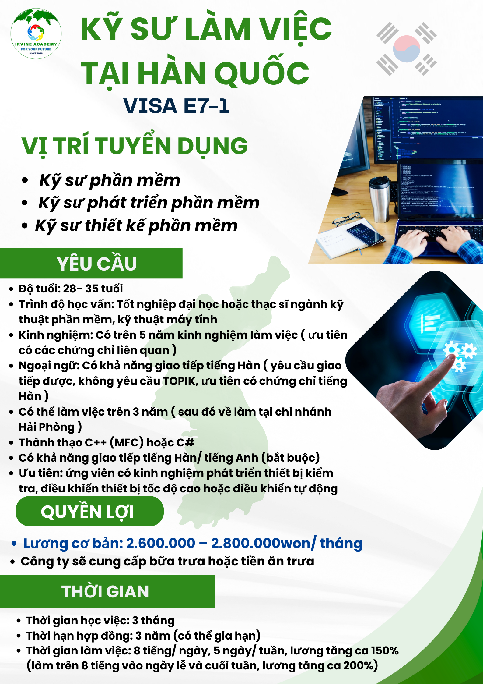 Nếu bạn muốn biết thêm chi tiết về chương trình tuyển dụng Kỹ Sư E7-1 tại Hàn Quốc, đừng ngần ngại liên hệ ngay với Irvine Group. Chúng tôi luôn sẵn sàng tư vấn và hỗ trợ bạn trên con đường sự nghiệp quốc tế.