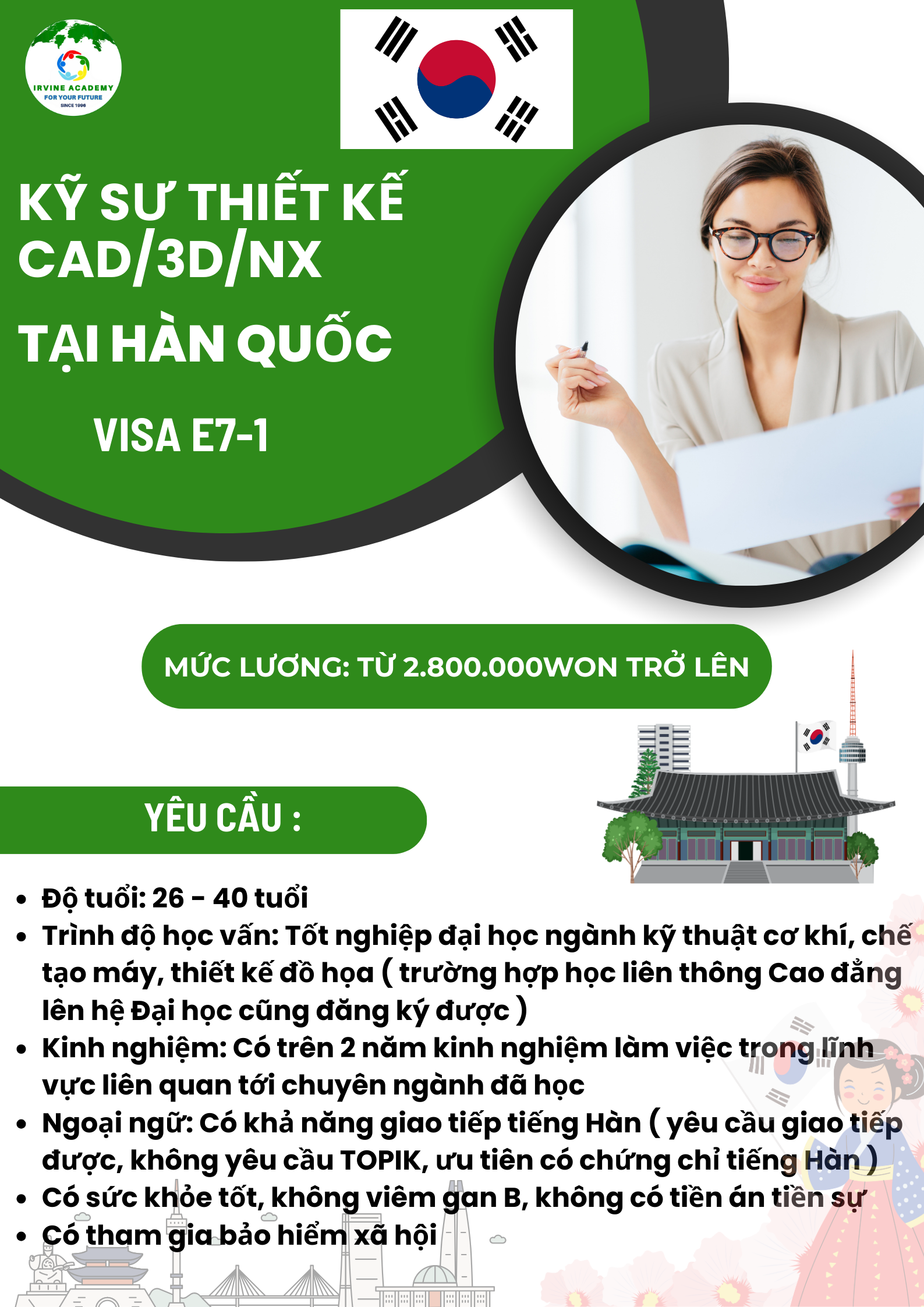 Chương trình tuyển dụng Kỹ Sư E7-1 tại Hàn Quốc là một cơ hội vàng dành cho các kỹ sư có tay nghề, nhất là những người có đam mê và chuyên môn trong lĩnh vực thiết kế công trình, vận hành máy CNC và các ngành công nghiệp kỹ thuật cao. Đây là một trong những chương trình việc làm quốc tế mà nhiều kỹ sư mong muốn tham gia để nâng cao tay nghề và khám phá một nền văn hóa làm việc tiên tiến, hiện đại.