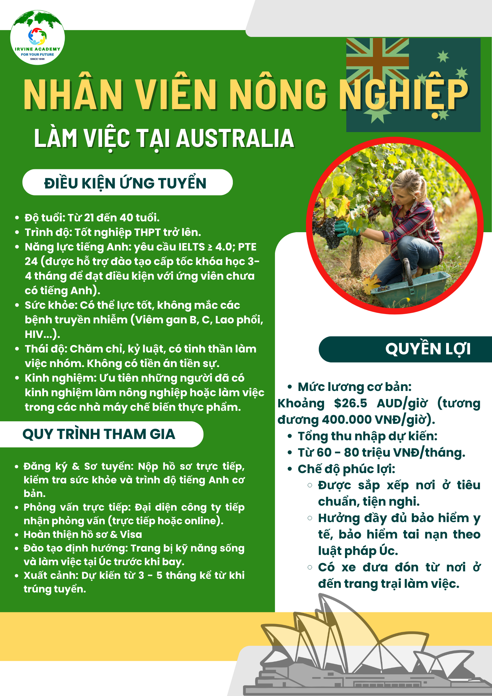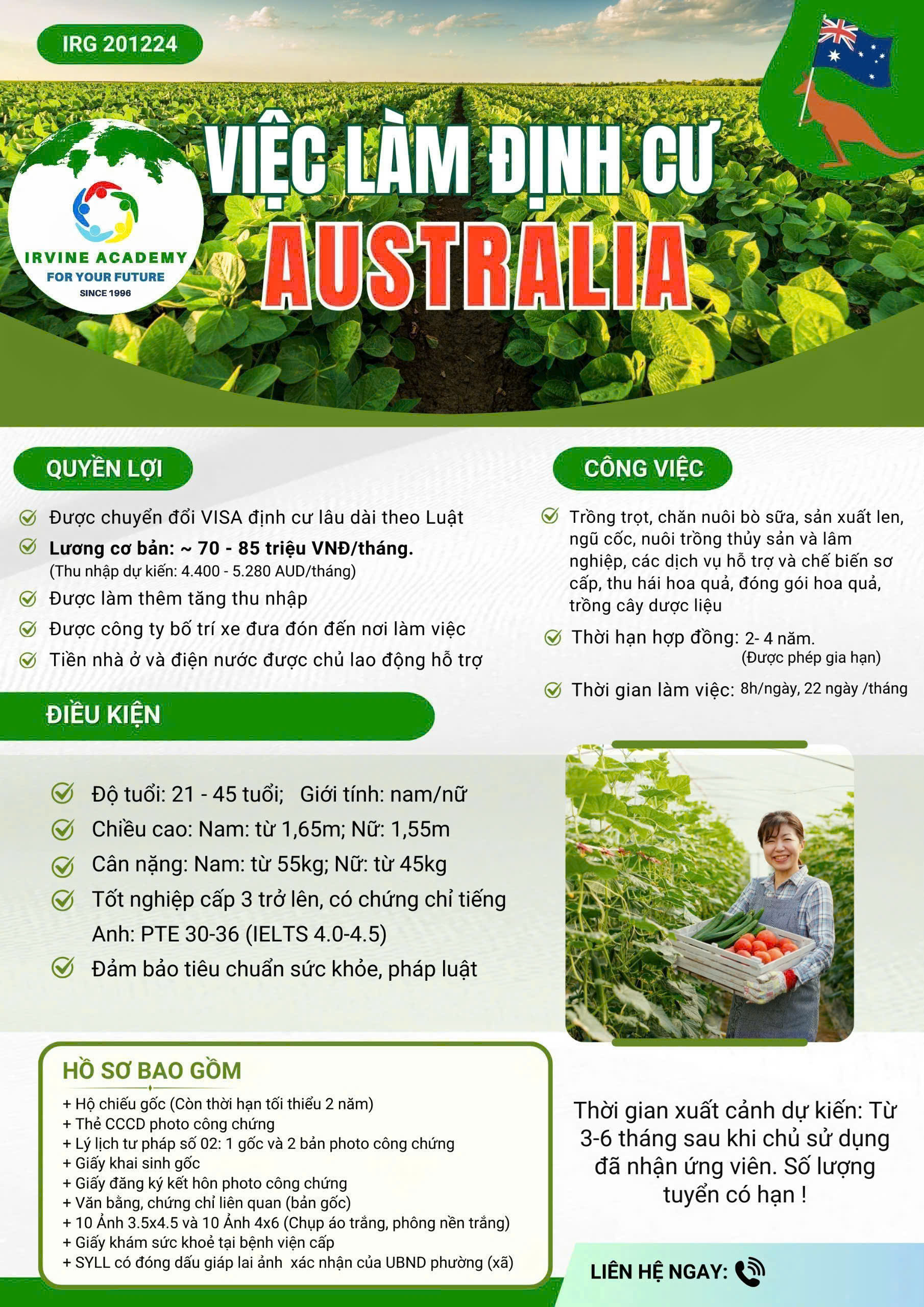 4/ Điều kiện xuất khẩu lao động ngành nông nghiệp Úc